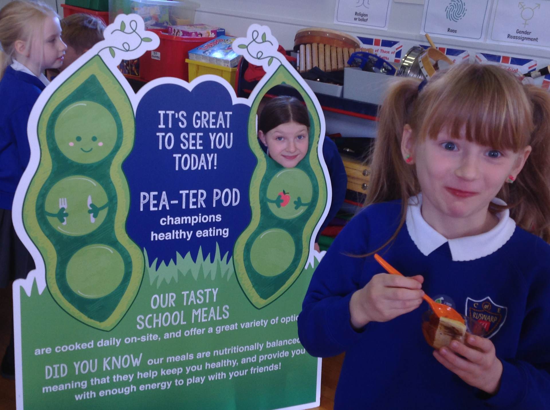 Every two weeks, the lucky winners get to sit at a special table where they will be served by the adults and enjoy their lunch on the golden plates and drink from the golden cups. This reward applies to all, whether hot or packed lunches and the children certainly enjoy this special time together.